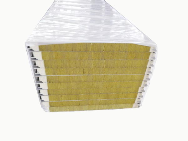 巖棉橫裝夾芯板,外觀漂亮,防水,安裝方便。其中有純巖棉橫裝夾芯板和聚氨酯封邊的巖棉夾芯板。采用聚氨酯封邊亦或是純巖棉夾芯板是根據項目的實際需求而定,聚氨酯封邊巖棉夾芯板在成本上要比純巖棉夾芯板略高。企口連接處的封邊采用發(fā)泡的聚氨酯,增強了板子的強度,使得板子更平整,另外也起到了防水的作用。